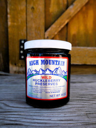 High Mountain Quality Products from Ravalli, Montana Wild huckleberries are a hand-picked mountain delicacy Ingredients: sugar, huckleberries, cit...